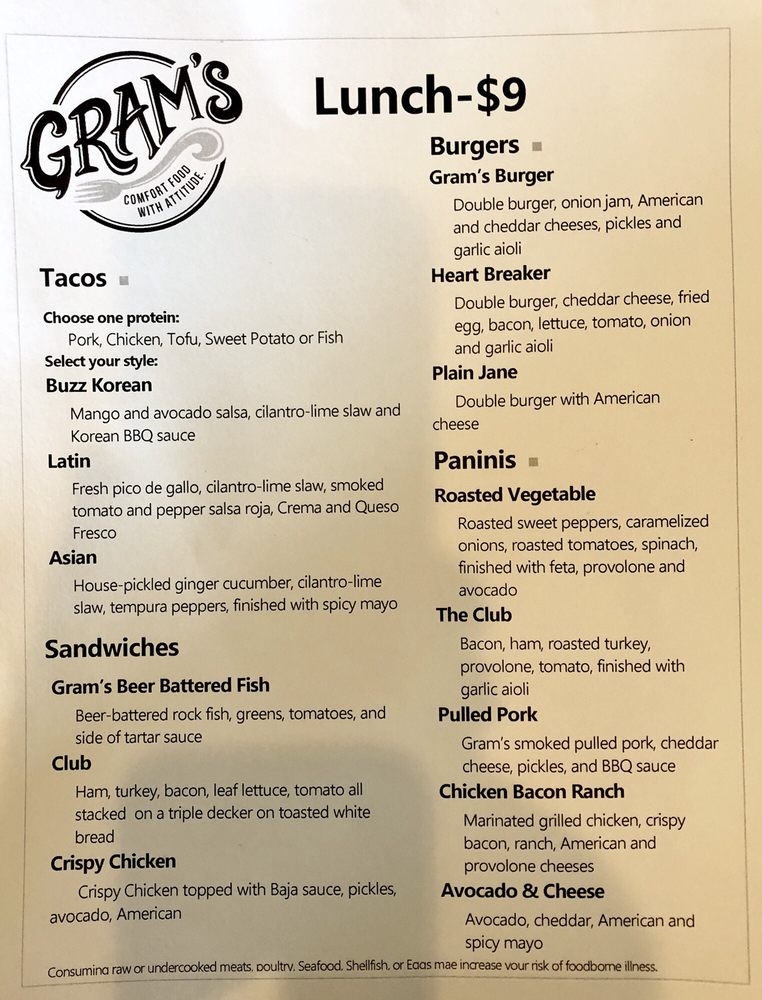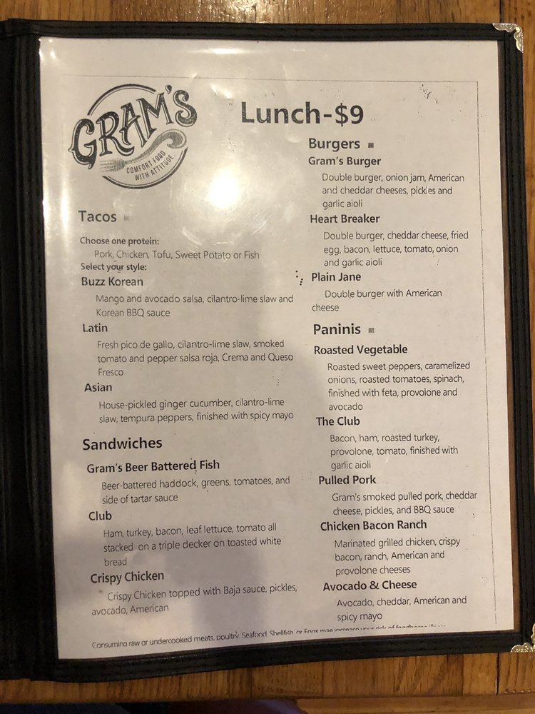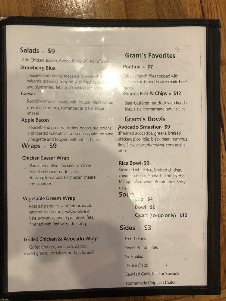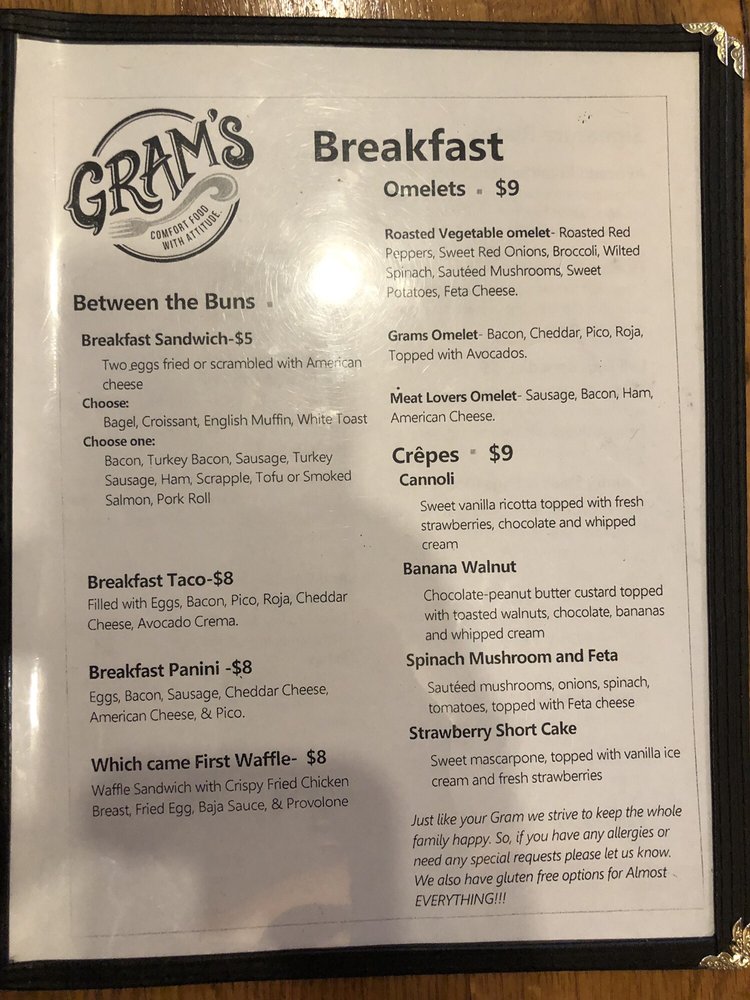 Grams, located in Lewisburg, PA, is a local favorite for American cuisine with a focus on seafood, breakfast, and brunch. This casual and trendy spot offers a variety of options, including vegan and vegetarian choices. With heaping portions and a unique menu, Grams has become a go-to dining destination. Customers have praised the polite and helpful staff, as well as the delicious dishes like battered shrimp with spicy kani rice bowl. The cozy atmosphere and welcoming staff add to the overall dining experience. Whether you're looking for comfort food with an attitude or a gourmet meal, Grams has something for everyone. Don't miss out on their coffee menu, outdoor seating, and happy hour specials.Grams truly is a local institution that continues to delight customers with its flavorful and diverse menu options.